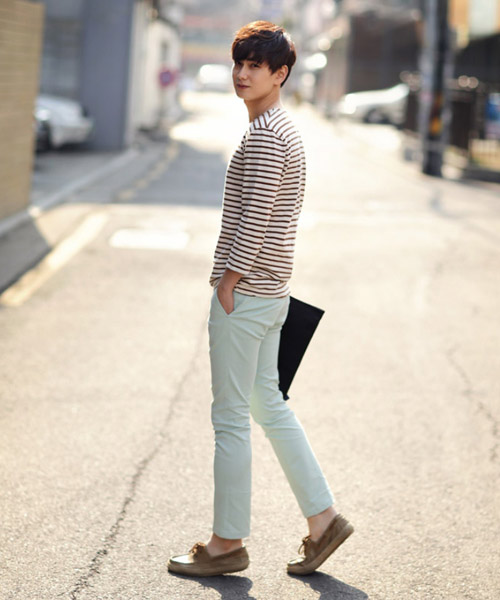 Đây chính là sự phối hợp có sự tương phản khá rõ ràng, đồng thời cũng đơn giản để các bạn nam kết hợp. Quần jeans và t-shirt hẳn đã quá đỗi quen thuộc với đông đảo chúng ta bởi sự dễ chịu, sôi động; nhưng khi t-shirt được bắt cặp cùng quần tây, chúng sẽ mang tới một vẻ ngoài đậm chất cổ điển cho chúng ta trong mùa hè oi bức hay trong mùa thu khi tiết trời thoải mái. Không cần phải giải thích nhiều, với t-shirt chúng ta đơn giản đã có 1 items lý tưởng để đổi thay cho áo sơ mi trong ngày nắng, trong khi đó quần âu luôn mang tới diện mạo nhã nhặn và lịch thiệp hơn quần jeans hay chinos, cũng như sự thoải mái cho người diện (do vật liệu dành cho quần âu mỏng, mát hơn so với quần jeans).